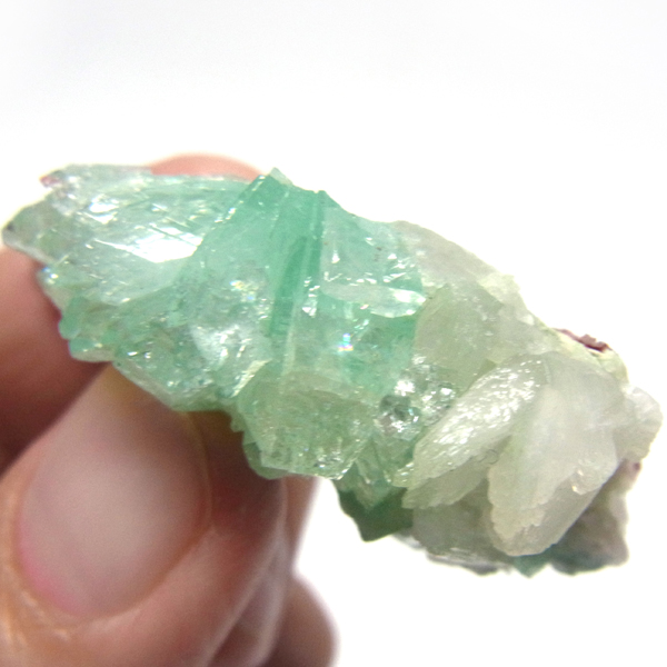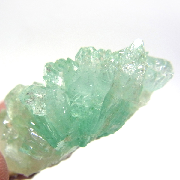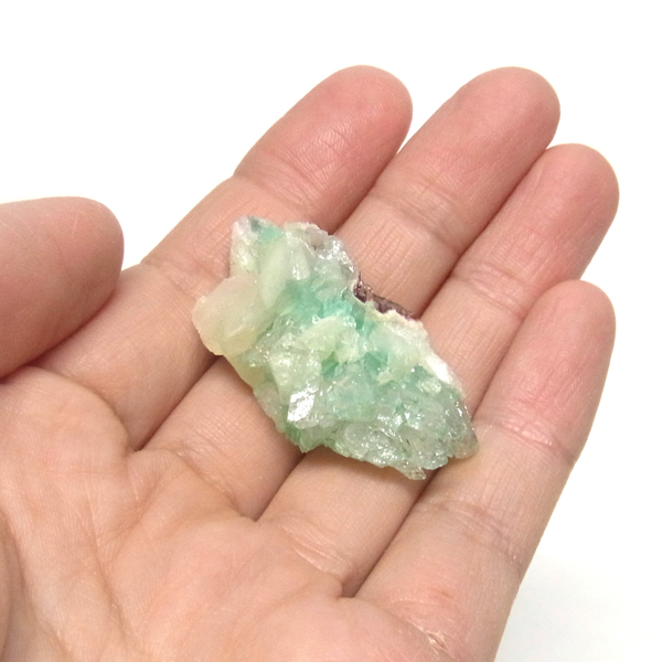 インド、プネー産のグリーンアポフィライト原石です。アポフィライトは、柱状や正方錘状の結晶を持ち、ひとつひとつの結晶が複雑に入り組んだ群晶が水晶とは違う神々しい輝きを魅せてくれます。透明度が非常に高くキラキラ輝き神秘的でとてもきれいです。