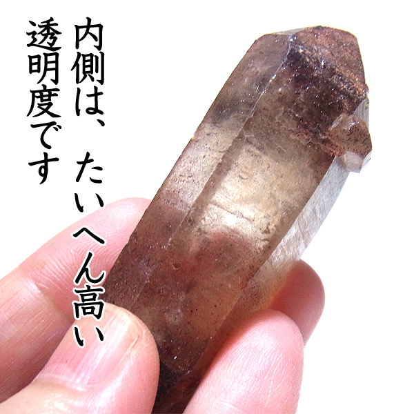 名称は「レピドクロサイトinクォーツ」としていますが、実はこの商品はシトリンなのです。スーパーセブンの鉱物の一つであるレピドクロサイトが、びっしりと表面を覆っています。内部は非常に透明度が高く、光に透かすと色々な表情を見せてくれます。