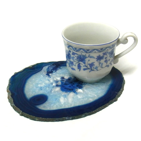 染色することにより、色の濃淡ができ、メノウの縞模様がより一層美しくなります。置物を置いたり、鉱物を置いたりのインテリアとしてや、グラスなどを置くコースターとしてもお楽しみ頂けます。