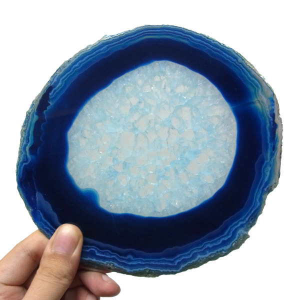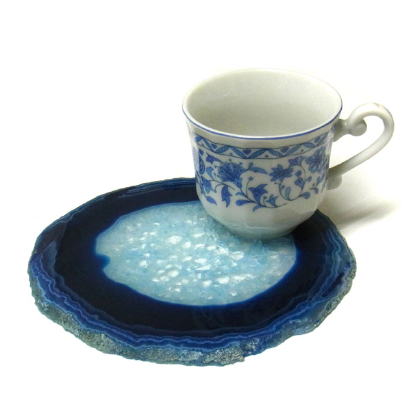 染色することにより、色の濃淡ができ、メノウの縞模様がより一層美しくなります。置物を置いたり、鉱物を置いたりのインテリアとしてや、グラスなどを置くコースターとしてもお楽しみ頂けます。