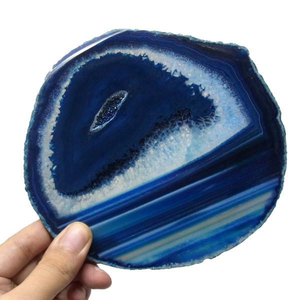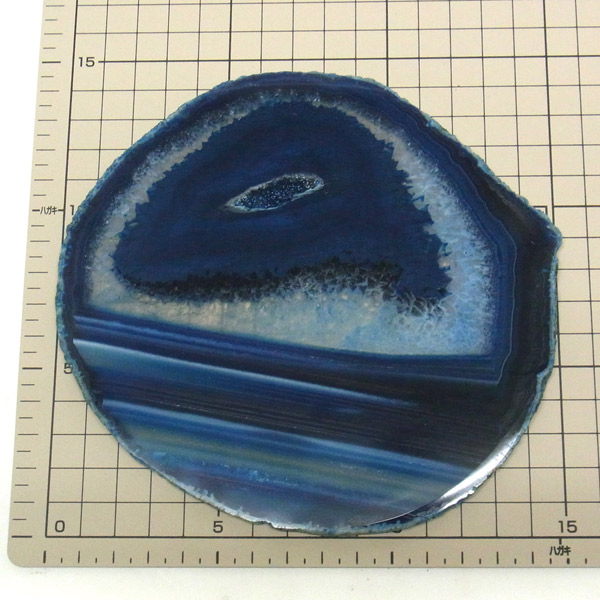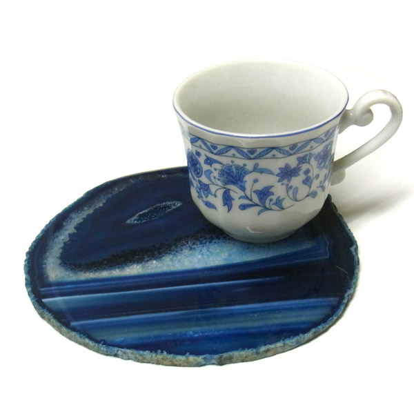 染色することにより、色の濃淡ができ、メノウの縞模様がより一層美しくなります。置物を置いたり、鉱物を置いたりのインテリアとしてや、グラスなどを置くコースターとしてもお楽しみ頂けます。