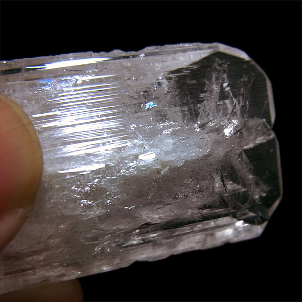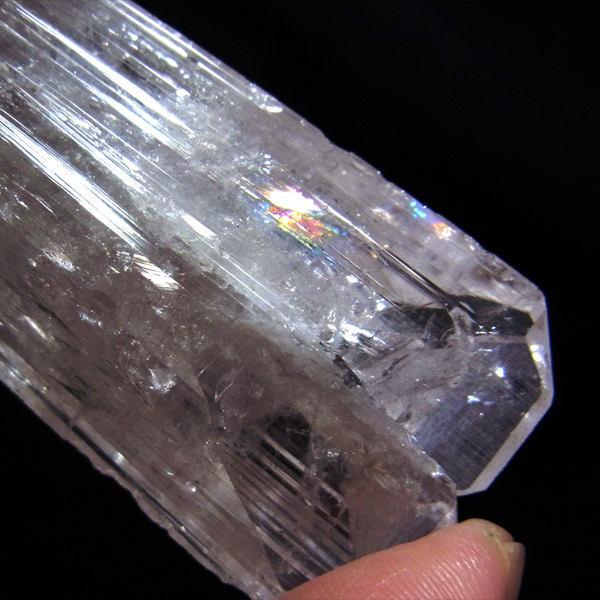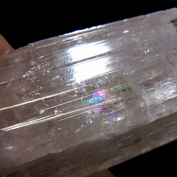 メキシコ産、ダンビュライトの原石です。 ダンビュライトはダイヤモンドの代用品として使われることもある石で、結晶の形はトパーズそっくりです。透明度と輝きは美しいの一言。レインボーも含まれ、基本的に透明ですが、僅かにほんのりとピンク色をしています。大きさも大きくお手頃な原石。おすすめの高品質な一点です。