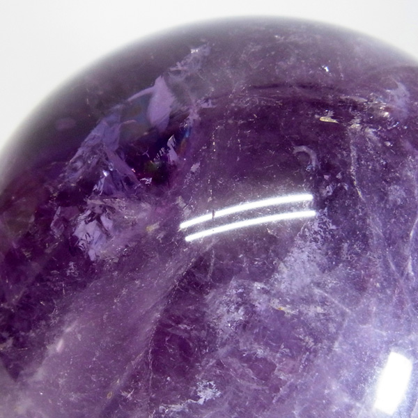 重さ2.7kgの大きなアメジスト球です。はっきりとした紫が特徴的なアメジスト球で、結晶が美しく自然の神秘に心が癒されます。両手で持ってもどっしりとしていて存在感があります。一部レインボーも見られます。