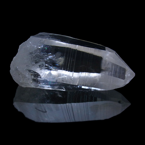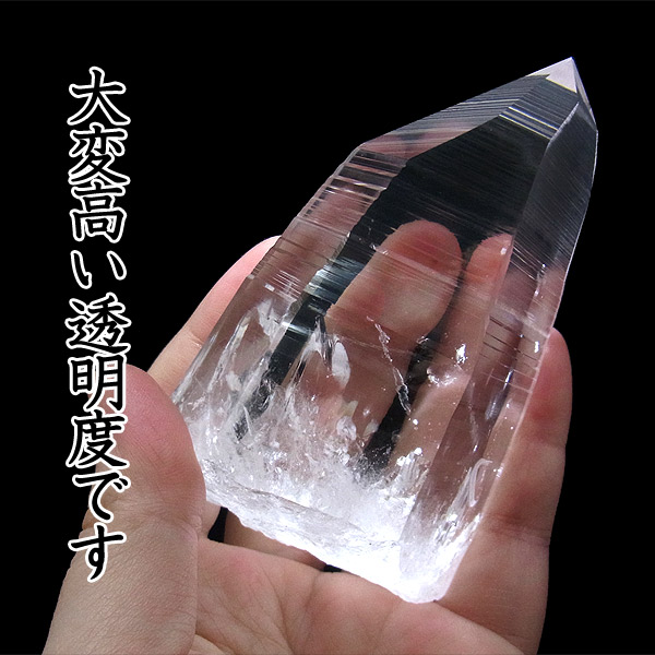 コロンビア・サンタンデール産のレムリアンクォーツです。何と言っても、世界屈指の圧倒的な透明度と、光を跳ね返す表面のテリです。