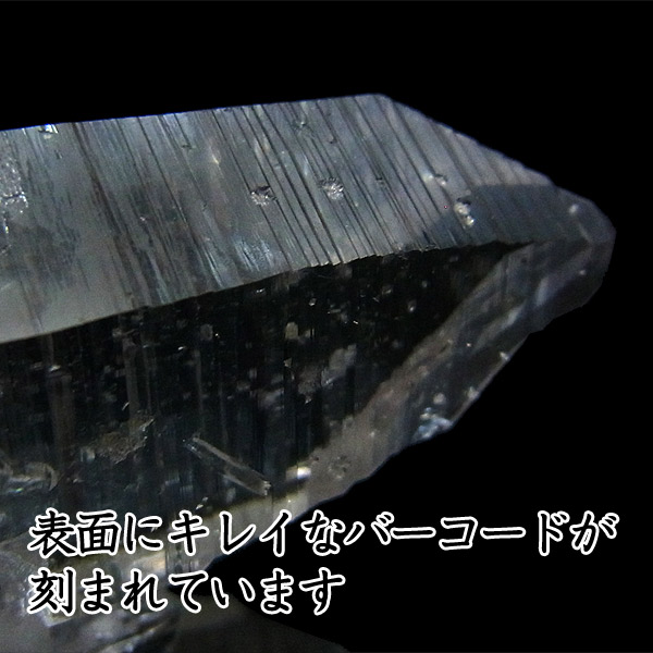 表面にバーコードのようなしま模様(レムリアン・リッジ)が浮き出ている形状をレムリアンシードと呼びます。 レムリアンシードは、太古の海に沈んだとされる、伝説のレムリア大陸から名付けられた水晶です。 レムリアンレッジに触れながら瞑想すると、古代レムリア人の叡智に触れられると言われています。 水晶は通常クラスターのように群生した状態で発見されるのですが、このレムリアンシードはポイント状の結晶が、まるで誰かが置いていったかのような状態で発見されるそうです。