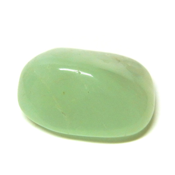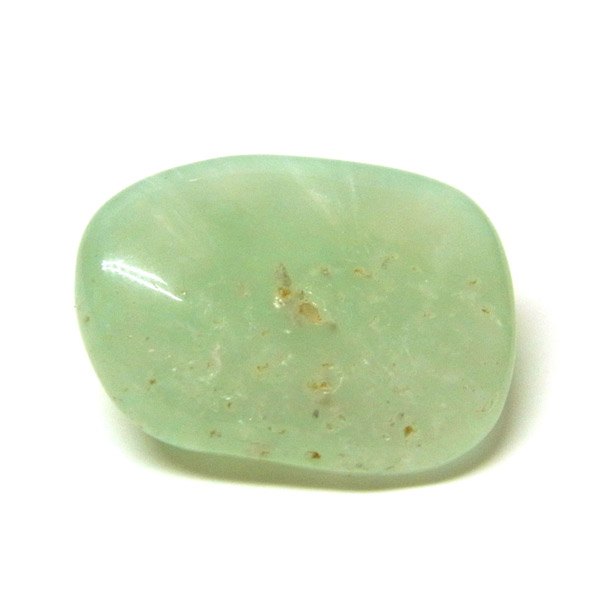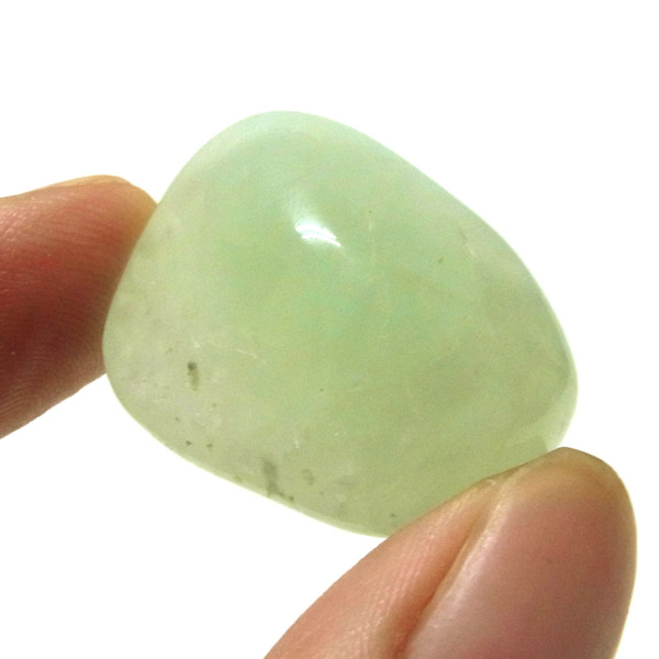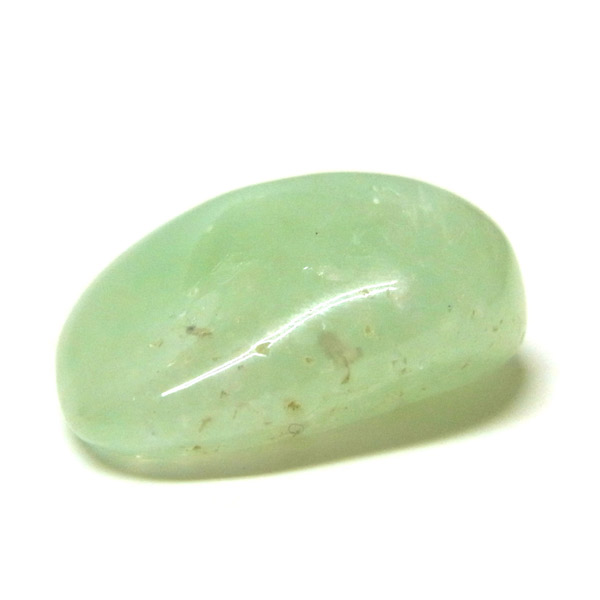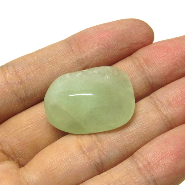 南アフリカ産のプレナイト、タンブルです。プレナイトは、淡い青緑から黄色にかけての色合いの石。1788年に南アフリカで初めてこの石を発見したフォン・プレーン大佐にちなんで名付けられました。葡萄石という和名は産出時に見た目が葡萄のようであったことから名づけられました。今回は黄色味がかったものではなく、発色の良いミルキーな青よりの緑のプレナイトをご用意いたしました。優しい色合いで心が落ち着きます。
