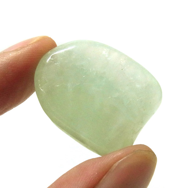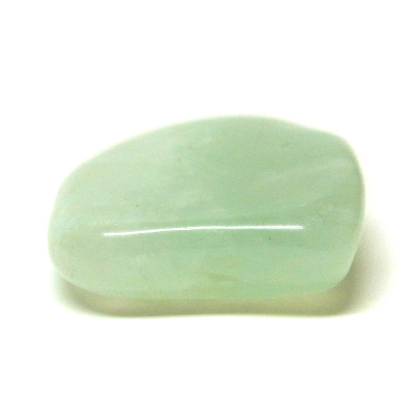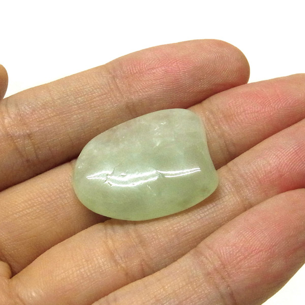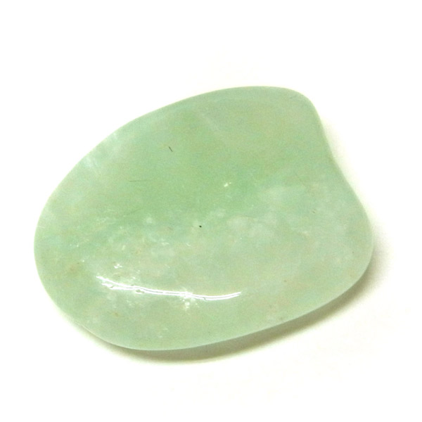南アフリカ産のプレナイト、タンブルです。プレナイトは、淡い青緑から黄色にかけての色合いの石。1788年に南アフリカで初めてこの石を発見したフォン・プレーン大佐にちなんで名付けられました。葡萄石という和名は産出時に見た目が葡萄のようであったことから名づけられました。今回は黄色味がかったものではなく、発色の良いミルキーな青よりの緑のプレナイトをご用意いたしました。優しい色合いで心が落ち着きます。