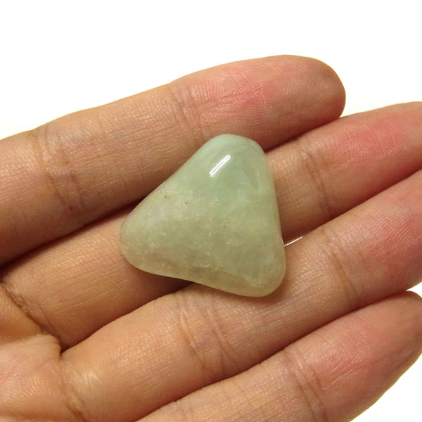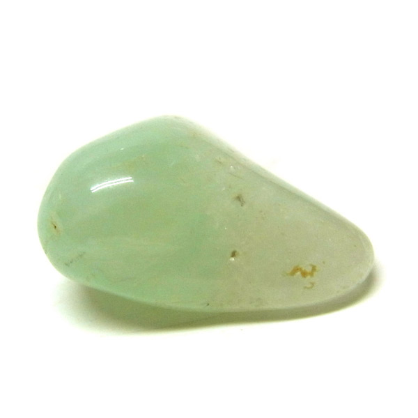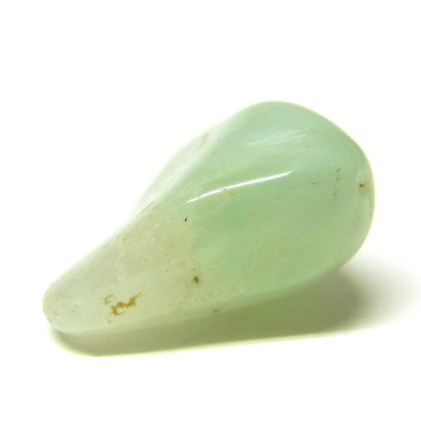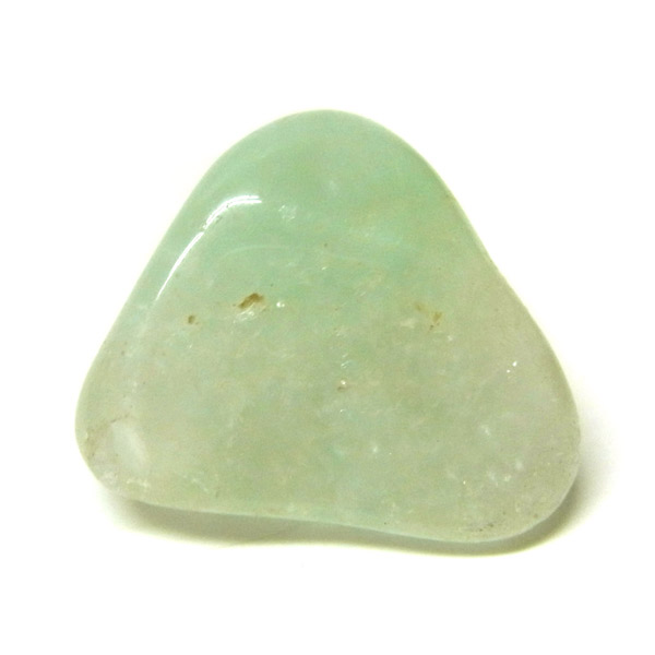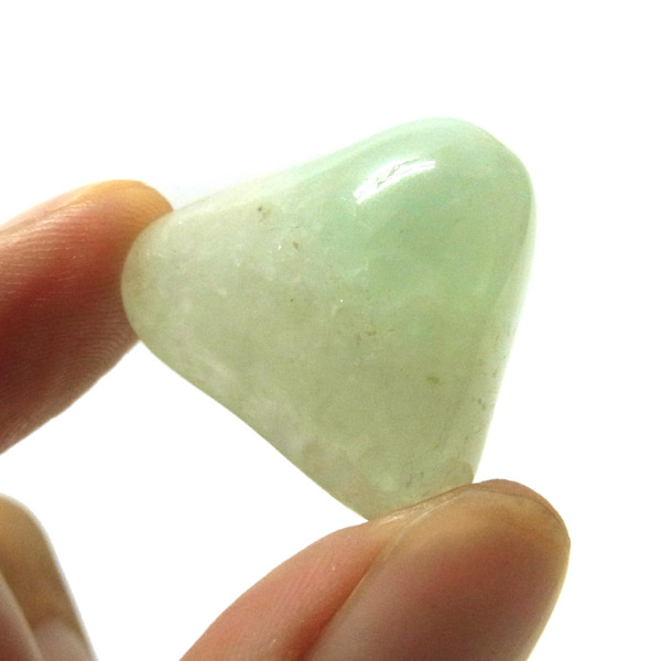南アフリカ産のプレナイト、タンブルです。プレナイトは、淡い青緑から黄色にかけての色合いの石。1788年に南アフリカで初めてこの石を発見したフォン・プレーン大佐にちなんで名付けられました。葡萄石という和名は産出時に見た目が葡萄のようであったことから名づけられました。今回は黄色味がかったものではなく、発色の良いミルキーな青よりの緑のプレナイトをご用意いたしました。優しい色合いで心が落ち着きます。