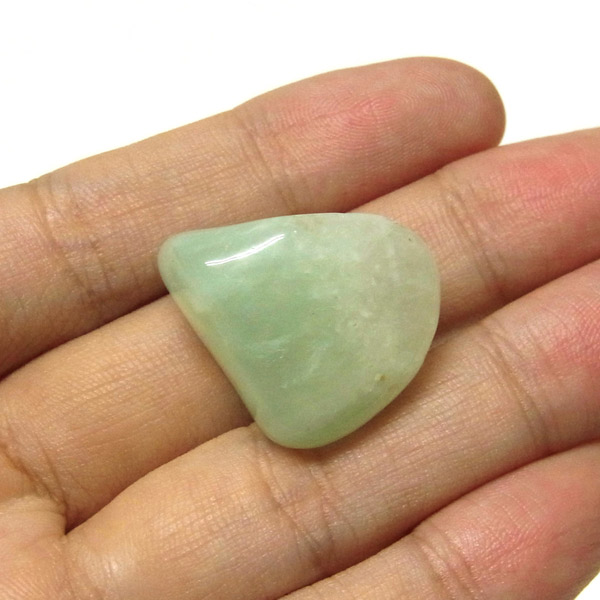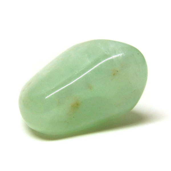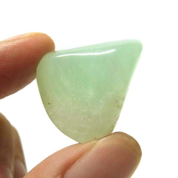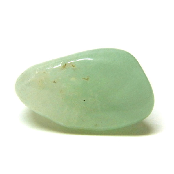 南アフリカ産のプレナイト、タンブルです。プレナイトは、淡い青緑から黄色にかけての色合いの石。1788年に南アフリカで初めてこの石を発見したフォン・プレーン大佐にちなんで名付けられました。葡萄石という和名は産出時に見た目が葡萄のようであったことから名づけられました。今回は黄色味がかったものではなく、発色の良いミルキーな青よりの緑のプレナイトをご用意いたしました。優しい色合いで心が落ち着きます。