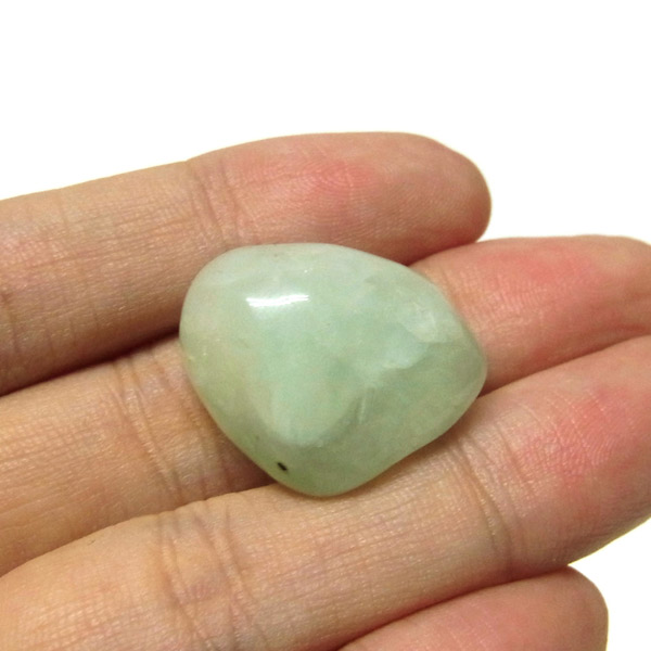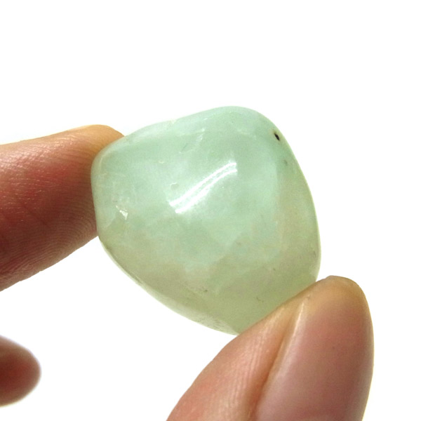 南アフリカ産のプレナイト、タンブルです。プレナイトは、淡い青緑から黄色にかけての色合いの石。1788年に南アフリカで初めてこの石を発見したフォン・プレーン大佐にちなんで名付けられました。葡萄石という和名は産出時に見た目が葡萄のようであったことから名づけられました。今回は黄色味がかったものではなく、発色の良いミルキーな青よりの緑のプレナイトをご用意いたしました。優しい色合いで心が落ち着きます。