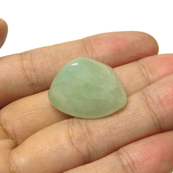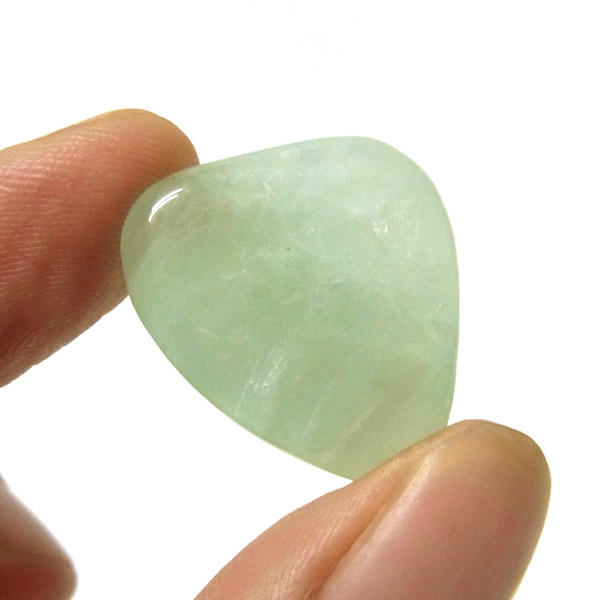 南アフリカ産のプレナイト、タンブルです。プレナイトは、淡い青緑から黄色にかけての色合いの石。1788年に南アフリカで初めてこの石を発見したフォン・プレーン大佐にちなんで名付けられました。葡萄石という和名は産出時に見た目が葡萄のようであったことから名づけられました。今回は黄色味がかったものではなく、発色の良いミルキーな青よりの緑のプレナイトをご用意いたしました。優しい色合いで心が落ち着きます。