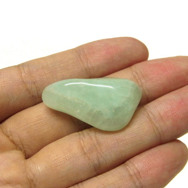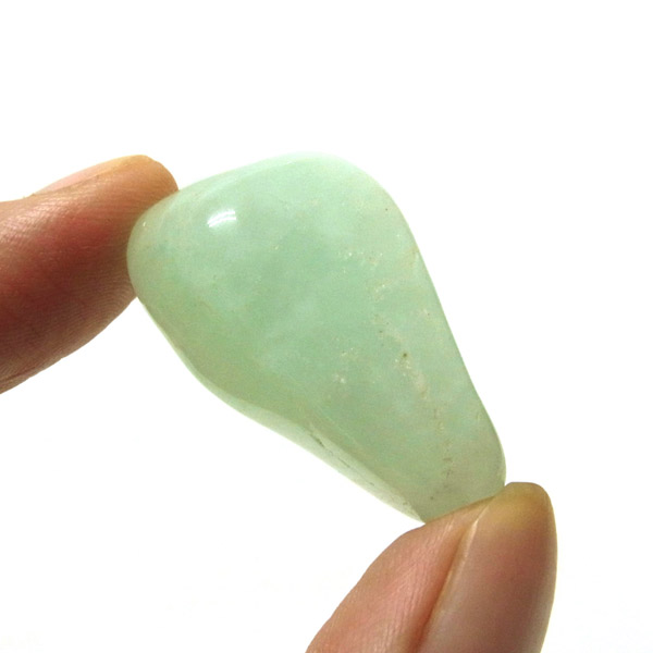 南アフリカ産のプレナイト、タンブルです。プレナイトは、淡い青緑から黄色にかけての色合いの石。1788年に南アフリカで初めてこの石を発見したフォン・プレーン大佐にちなんで名付けられました。葡萄石という和名は産出時に見た目が葡萄のようであったことから名づけられました。今回は黄色味がかったものではなく、発色の良いミルキーな青よりの緑のプレナイトをご用意いたしました。優しい色合いで心が落ち着きます。