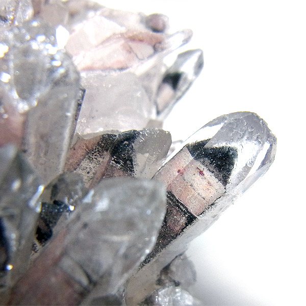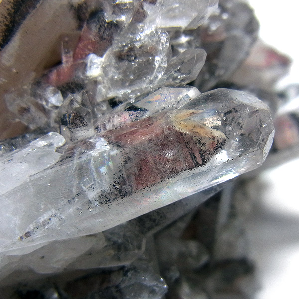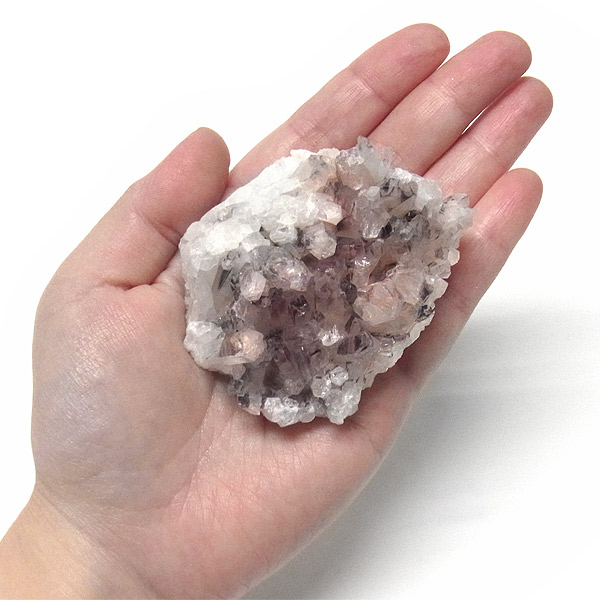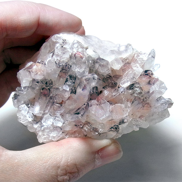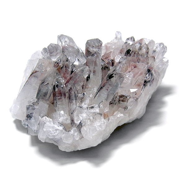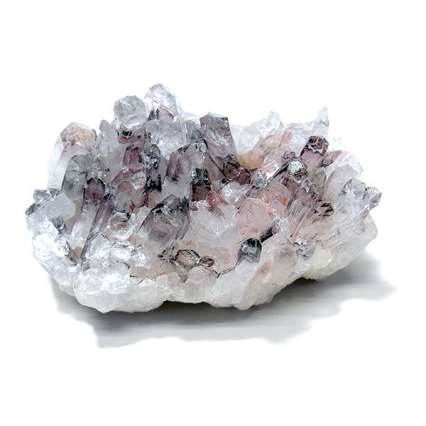 南インド産のサチャロカ水晶クラスターです。サチャロカ水晶は、南インドで崇拝されているサチャロカ修道院近隣の土地でわずかしか採掘されない天然の希少な水晶です。水晶の中に、ヘマタイトや鉄分などが多く含まれているため、黒や赤の内包物が見られます。内包物によってファントムが一部見られます。「サチャロカ」とは、サンスクリット語で「真実の場所」を意味し、古代から、エネルギーと癒しの力があると伝えられてます。