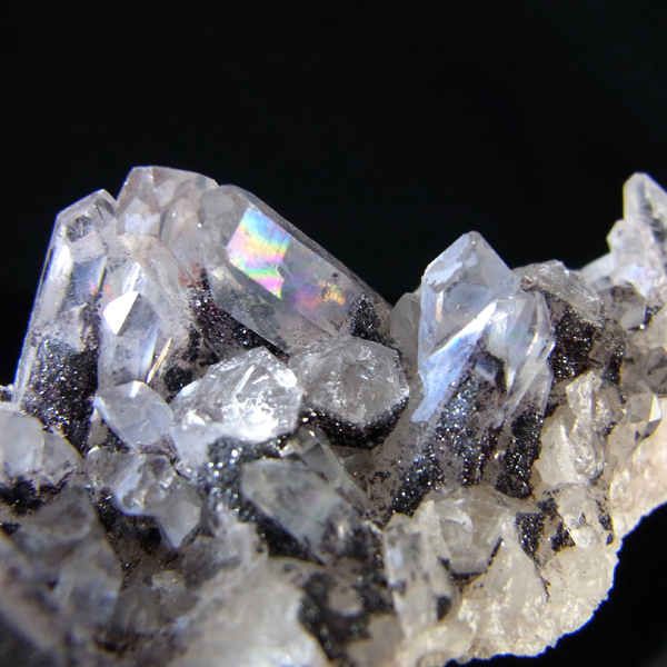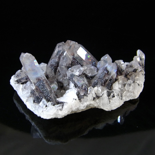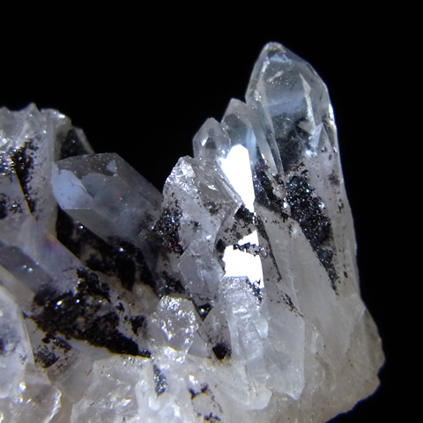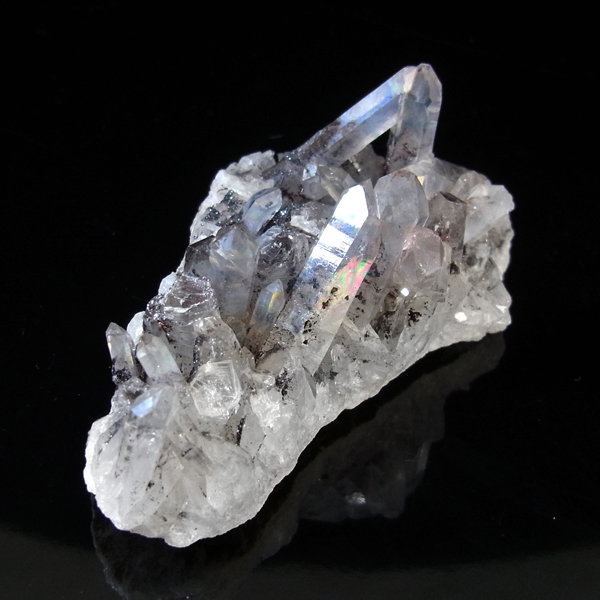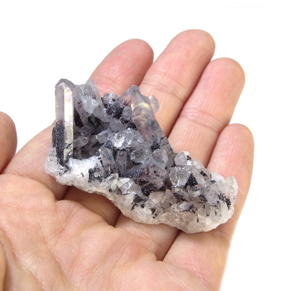 南インド産のサチャロカ水晶クラスターです。サチャロカ水晶は、南インドで崇拝されているサチャロカ修道院近隣の土地でわずかしか採掘されない天然の希少な水晶です。水晶の中に、ヘマタイトや鉄分などが多く含まれているため、黒や赤の内包物が見られます。内包物によってファントムが一部見られます。