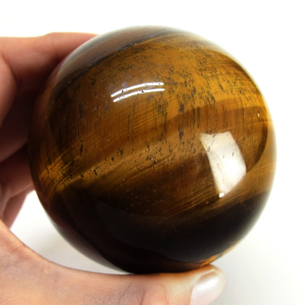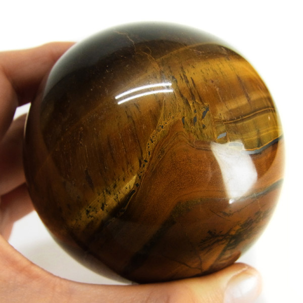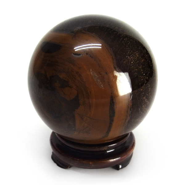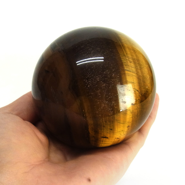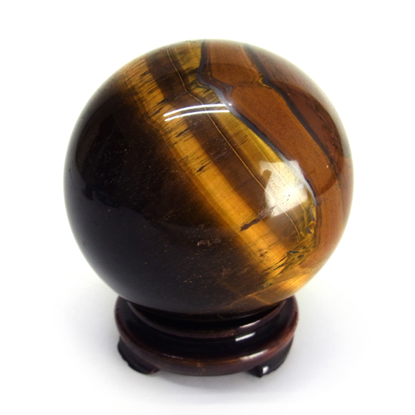 南アフリカ産のタイガーアイ球です。タイガーアイは、キャッツアイ効果で茶色から金色の縞模様が浮かび、輝きが虎の目を連想させる事からタイガーアイと呼ばれるようになりました。 一般的に金運といえばタイガーアイで水晶やアメシストなどと同等の認知度があり、非常に人気がある石です。