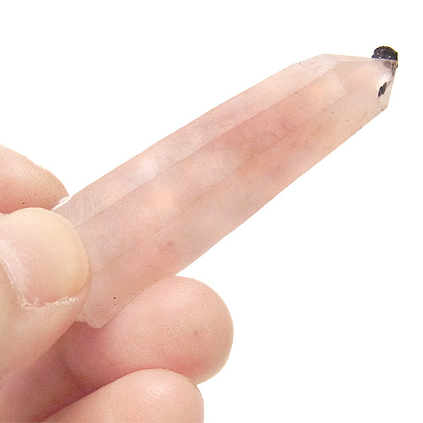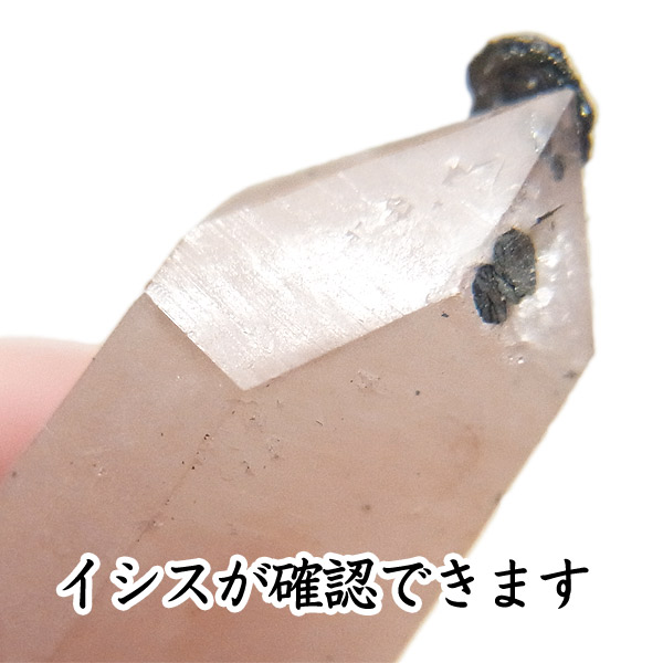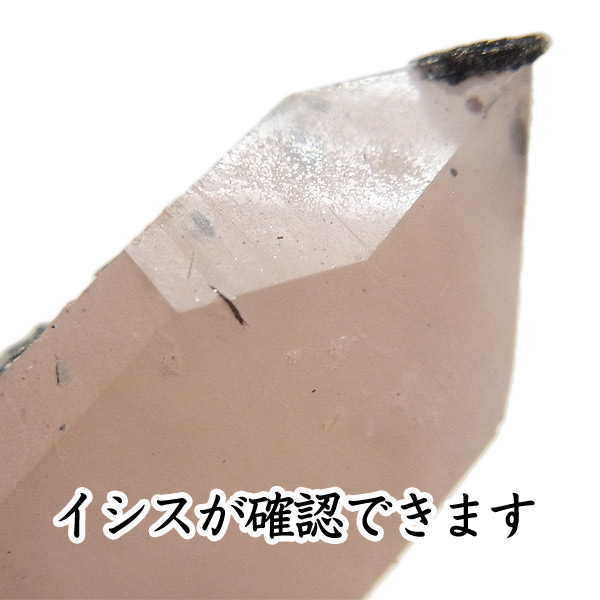 ピンククォーツ(アイアンローズ付き)レーザー型ポイント流通名で「ピンクヘデンバーガイトクォーツ」と呼ばれ、とてもレアな色や形状の水晶が産出することで話題になっている内モンゴル産の水晶です。