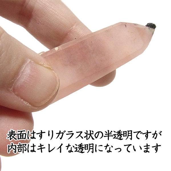 ヘマタイトに含まれるマンガンが透明感のあるピンクに変色し、クォーツに美しいグラデーションとなっています。