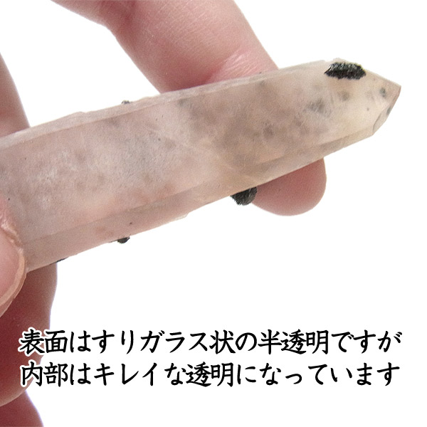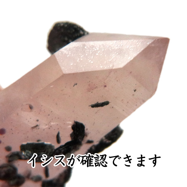 ピンククォーツ(アイアンローズ付き)レーザー型ポイント流通名で「ピンクヘデンバーガイトクォーツ」と呼ばれ、とてもレアな色や形状の水晶が産出することで話題になっている内モンゴル産の水晶です。