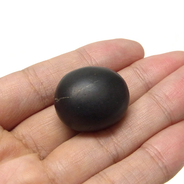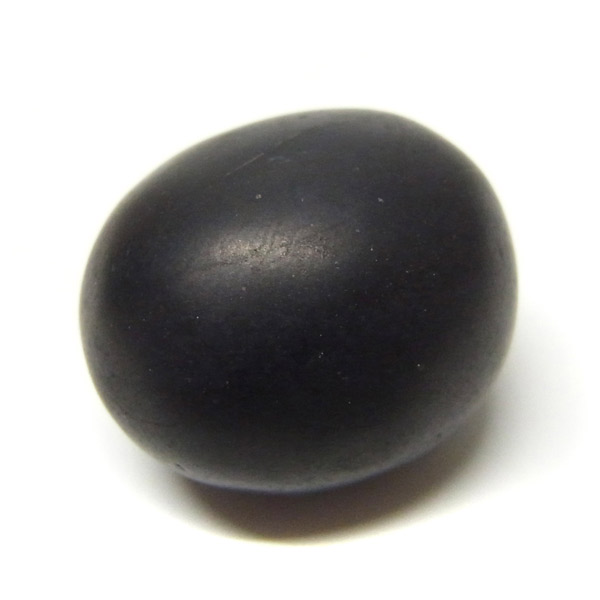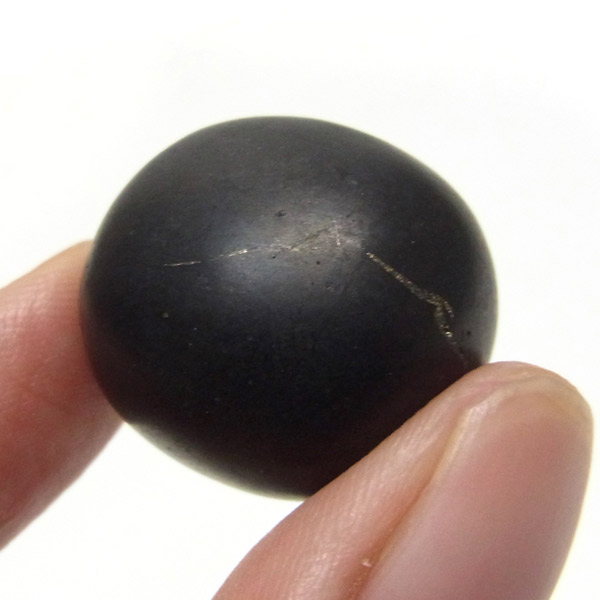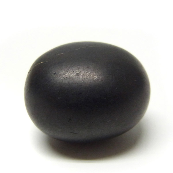 ロシア・カレリア産のシュンガイト、タンブルです。所々に金色のキラキラしたパイライトが見られます。