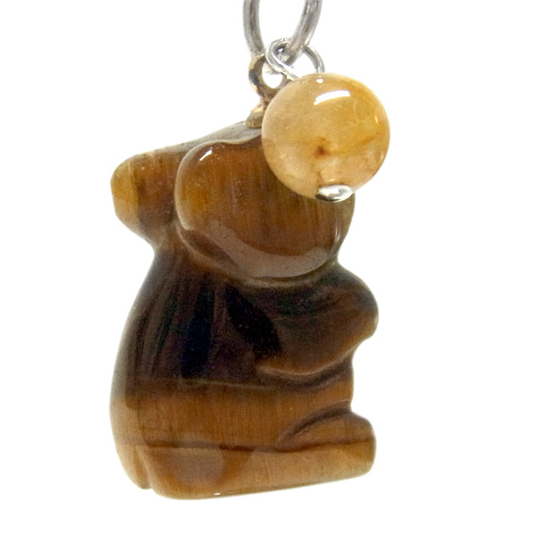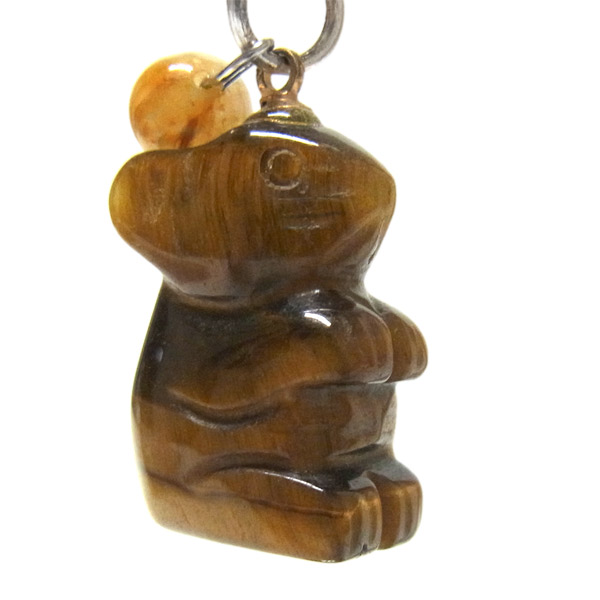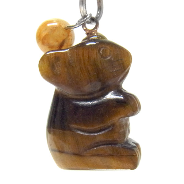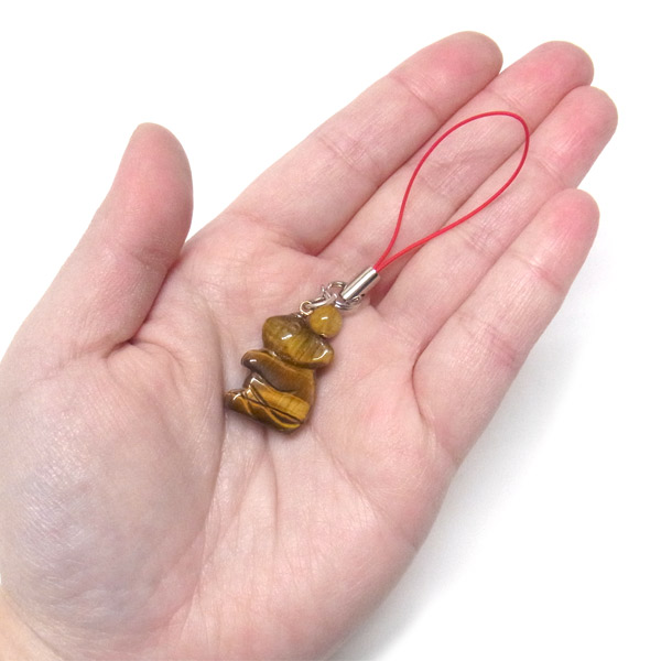 ネズミ タイガーアイ堀り ストラップ ルチル付き