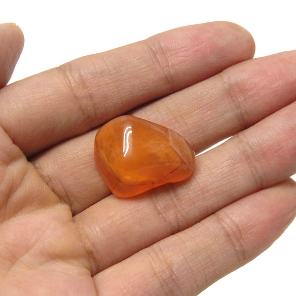 発色が良く、濃いオレンジが美しいカーネリアンのタンブルです。