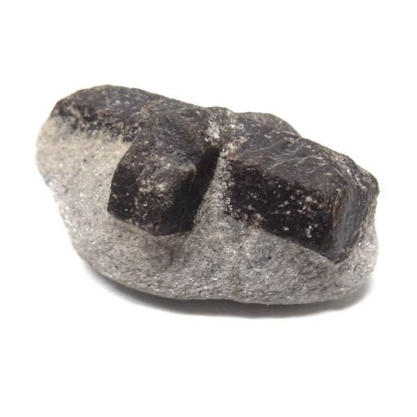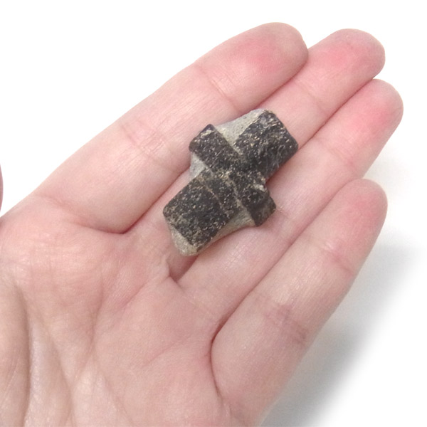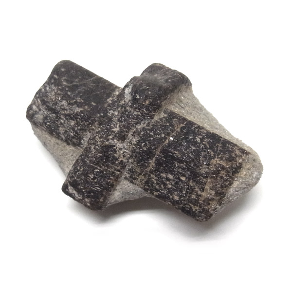 スタウロライト(十字石)は、中世ヨーロッパで十字軍の兵士たちが自らのシンボルとして持っていたといわれています。二つの結晶が絡み合って一方の結晶に入り込んだ貫入双晶の代表例とされる不思議な鉱物です。