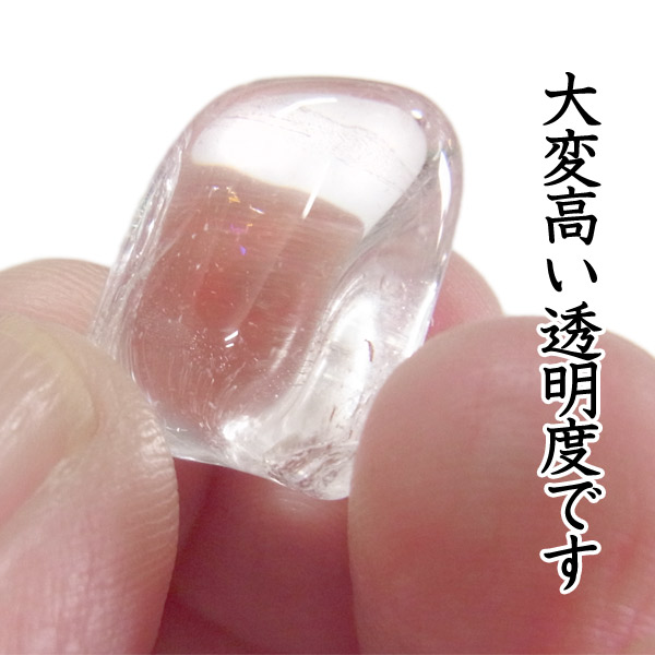 メキシコ産、ダンビュライトのタンブルです。 ダンビュライトはダイヤモンドの代用品として使われることもある石で、結晶の形はトパーズそっくりです。透明度と輝きは美しいの一言。レインボーも含まれ、基本的に透明ですが、僅かにほんのりとピンク色をしています。小さいながらも、心を奪われる魅力的なタンブルです。