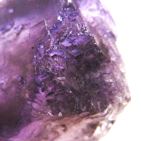 フローライト独特の結晶の形に合わせて、内部にはグレーの部分がけむり上状に浮かび上がります。