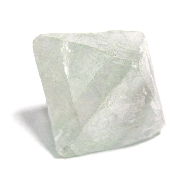 この正八面体の形は、蛍石が平面に平行に割れやすい性質を利用して加工したものです。
