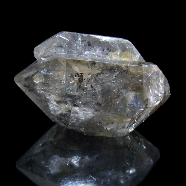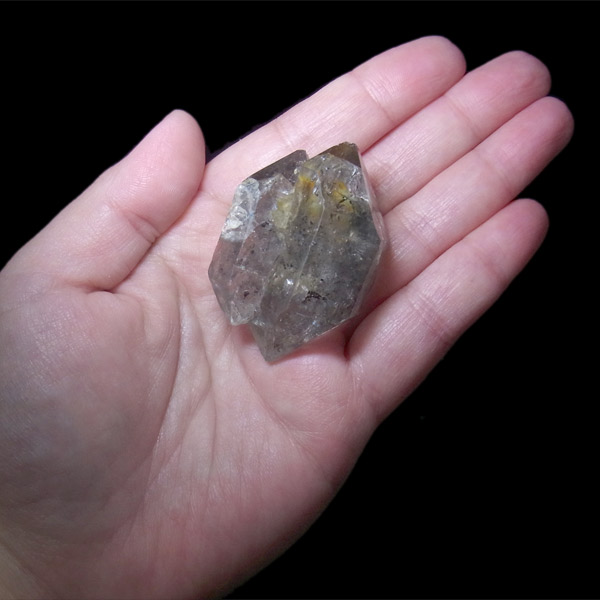 水晶内に空洞があり、水と一緒に雲母やタールなどの鉱物が内包されています。