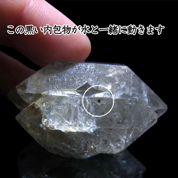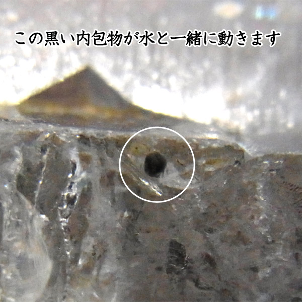 水晶を上下左右に動かすと、その内包物が動くことで水の存在が確認できます。