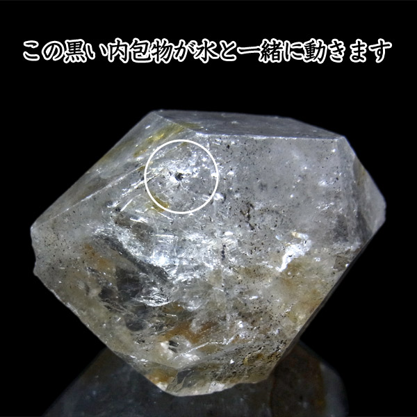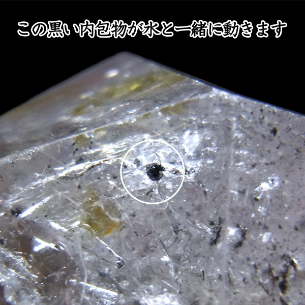 水晶を上下左右に動かすと、その内包物が動くことで水の存在が確認できます。