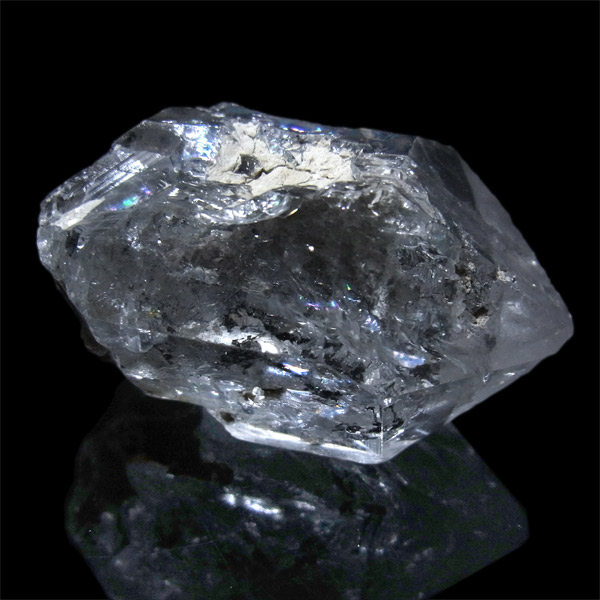 水晶内に空洞があり、水と一緒に雲母やタールなどの鉱物が内包されています。