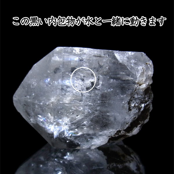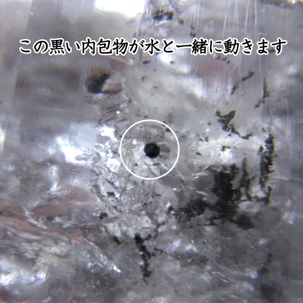水晶を上下左右に動かすと、その内包物が動くことで水の存在が確認できます。