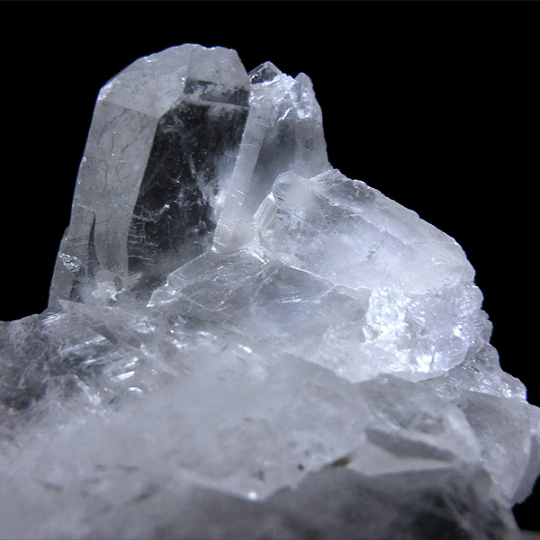通常の水晶の先端が点状に尖っているのとは異なり、タビュラー状(平板状)になっており、このタビュラー水晶が横にいくつも並んでいます。