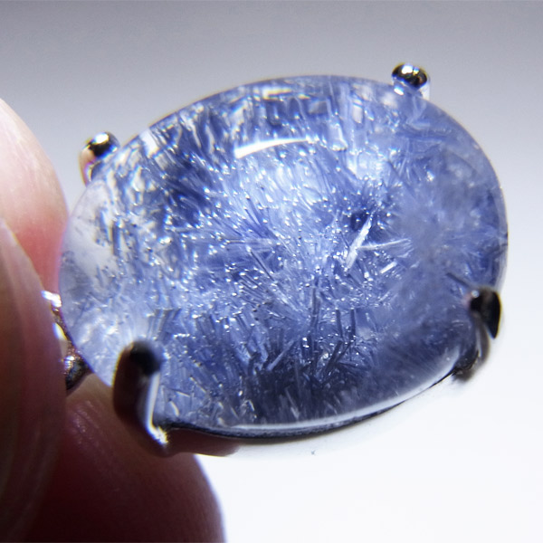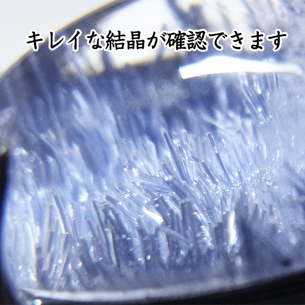 この鮮やかな青色は内包する鉄とチタンによる発色で、中でも花が咲いたような美しい結晶は稀少性が高く、一際人気があります。