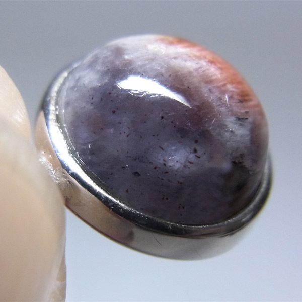 アイオライトの部分をルーペでご覧いただくとヘマタイトが内包されているのが分かり、これをブラッドショットアイオライトと呼びます。
