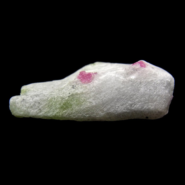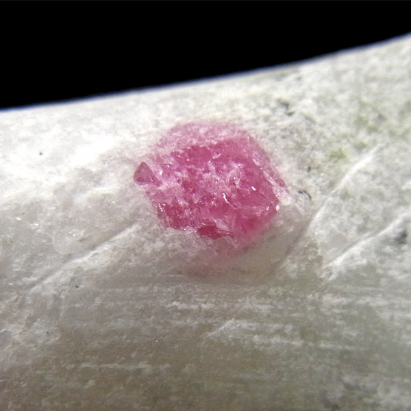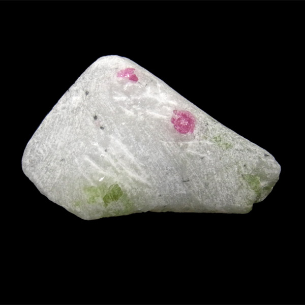 大理石の母岩(白い部分)付き、ピンクスピネルとパーガサイトの結晶です。