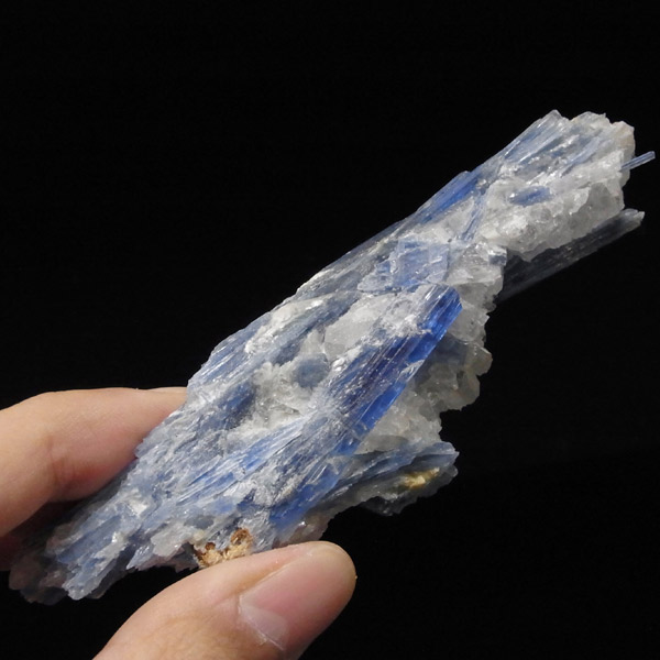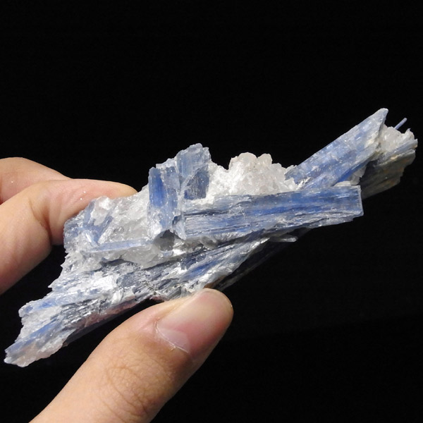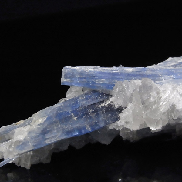 カイヤナイトはブルーがきれいな人気の鉱物です。柱状に伸びる結晶がうっとりする美しさを持っています。角度を変えると光を反射し、キラキラとした輝きが、これまた美しいです。