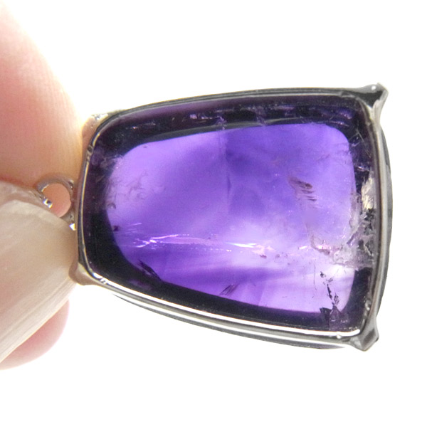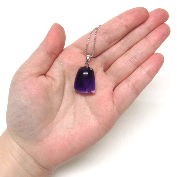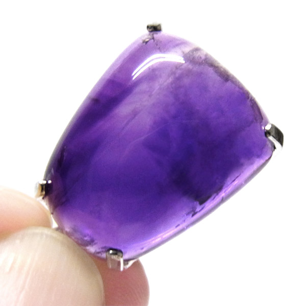 この商品は、職人が丁寧に時間をかけて手で磨いた、丹誠をこらして作り上げた形です。 角がキレイに丸く削られた楕円形。ぷっくりと膨らんだボリューム感。 透明度が大変高いため、光に透かすと、パープル~マゼンタ~ブルーのグラデーションが美しく浮き上がります。 角度や光の当たり具合で、色の変化を楽しめる逸品となっております。
