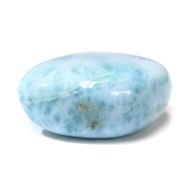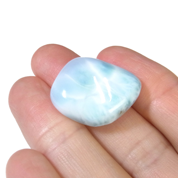 ドミニカ共和国産のラリマー、タンブルです。三大ヒーリングストーンに数えられるほど美しいラリマー、美しいカリブ海のような色合いのブルーとホワイトの模様がきれいに入っています。アクセサリーになるようなハイグレードのラリマーで撮影中に手に触れるだけでパワーを感じられました。1つでも十分癒されるのですが、複数個揃えられると気持ちが随分上がると思います。今のストレス社会には癒しが必要だと思いますので、この出会いに高品質ラリマーを是非いかがでしょうか。
