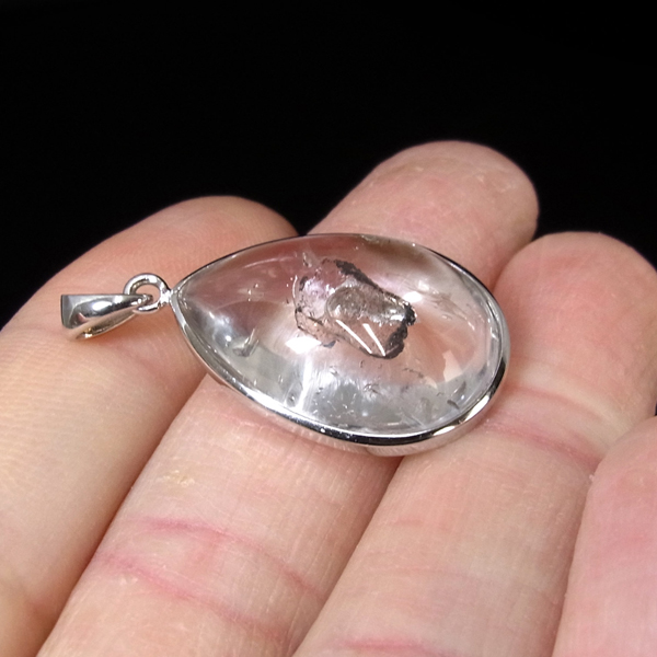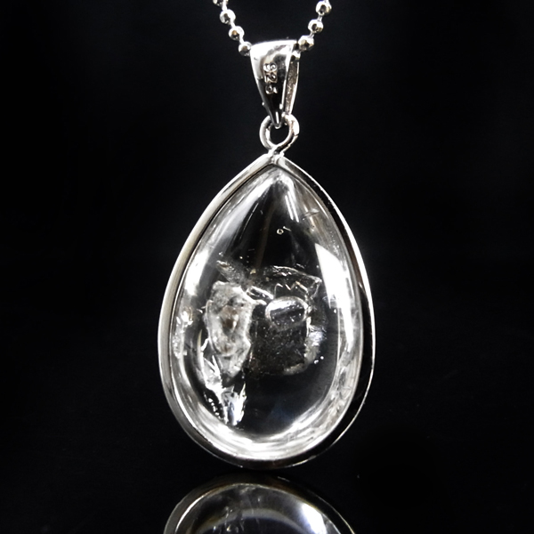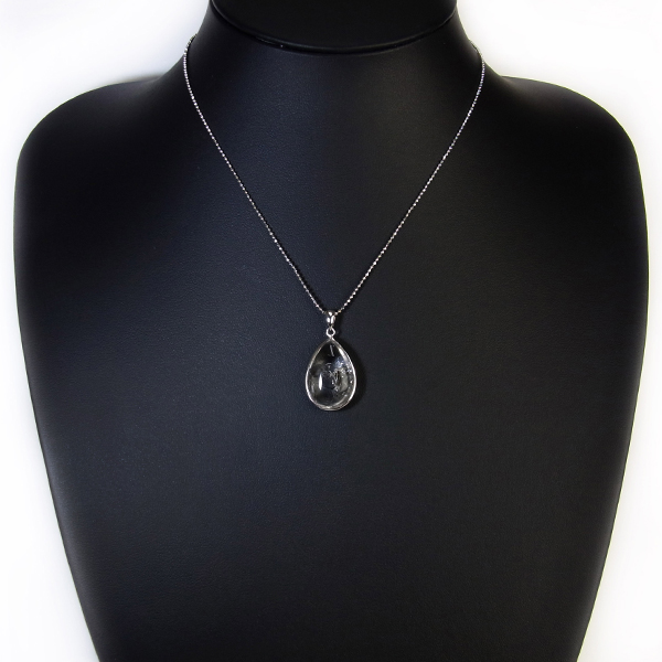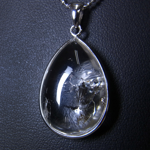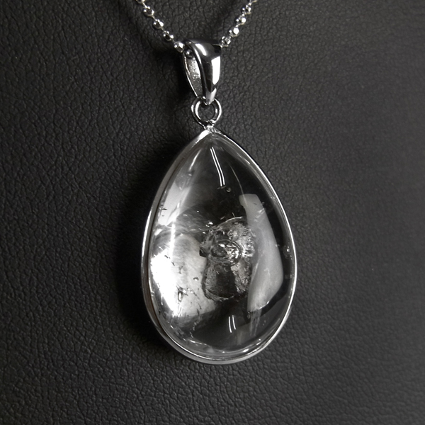 ブラジル産の大変透明度の高い水入り水晶のペンダントトップです。水入り水晶は名称の通り水晶の中に水が閉じ込められており、幸運を招く石といわれています。大変透明度が高く、コロンとかわいい水の塊が確認できます。左右に動かすと水と内包物が動くのが分かります。かわいい雰囲気をそのままにしずく形のペンダントトップに加工しています。※チェーンは別売りです。