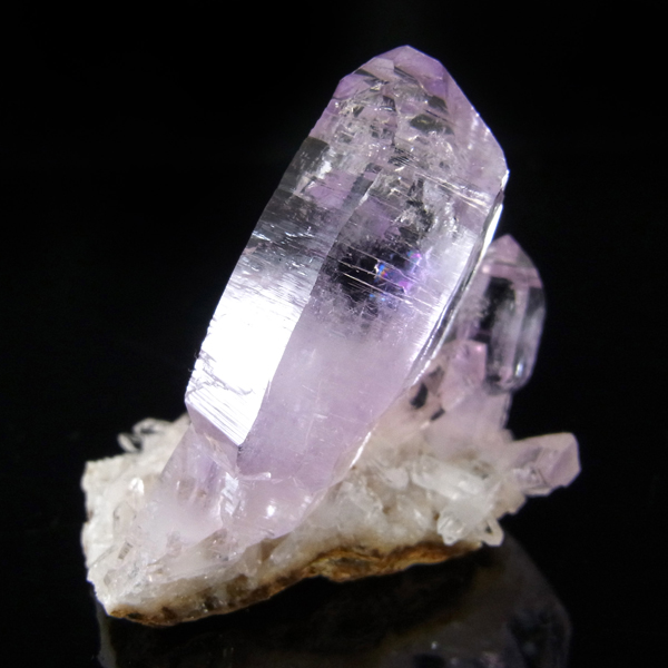 ブラジル産やウルグアイ産などのアメジストとは異なり、ポイントが細長く形成されるのが特徴です。 また、大変透明度の高いアメジストが産出され、「世界一高透明で美しいアメジスト」と言われています。産出量が非常に少なく、更に鉱山はすでに閉山されていることから、現在出回っているものは大変希少となります。 淡くてほんのりとしたパープルが先端に向かって濃くなるのも特長です。 何とも言えない清純さを兼ね備えており、ため息の出るような透明度を持っています。心の底から綺麗だなぁと感嘆させられる原石です。