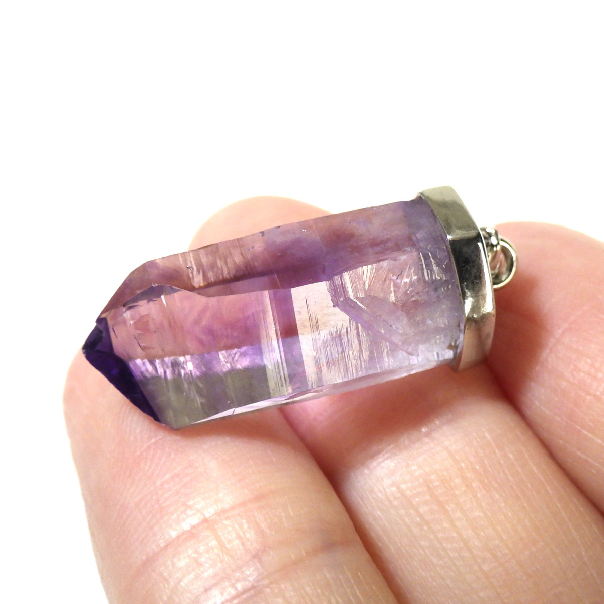 メキシコのベラクルス産のベラクルスアメジストのペンダントトップです。ベラクルス産のアメジストは非常に美しいアメジストが産出するブラジルのミナスジェライス、ナミビアのブランドバーグと並ぶ3大産地のひとつです。淡く優しい原石の美しさをそのままペンダントトップのアクセサリーに仕上げました。