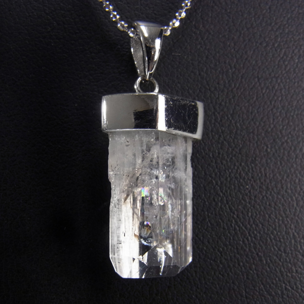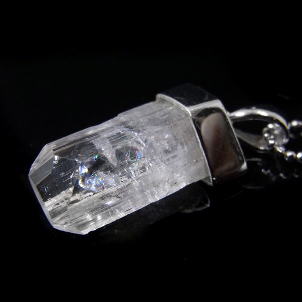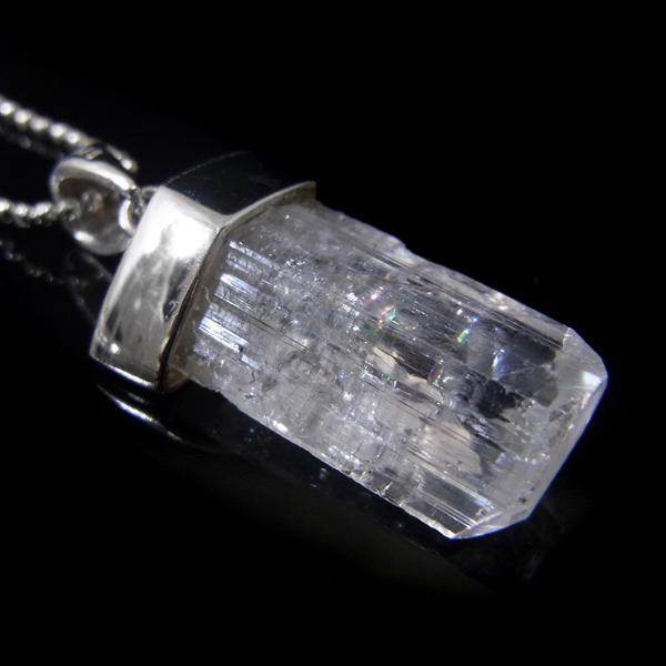 メキシコ産の高品質ダンビュライトのペンダントトップです。ダンビュライトは透明感と光の照りによる輝く筋が特徴的で水晶とも違ってなんともきれいです。磨くことない原石であって、カットされたような完成された美しさ。心に響く美しさでダンビュライトを身に着けるだけで普段の生活が変わりそうですよね。