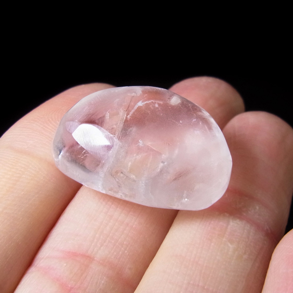ペルー産のピンクフローライト、タンブルです。 ガラスのような光沢を持つフローライトの中でも、ピンクの色のものは産出量がとても少なく、近年価値や希少性が高まってきた石の中の一つです。 透明度が非常に高く、淡いクリアピンクが心を和ませてくれます。