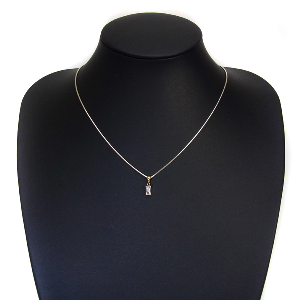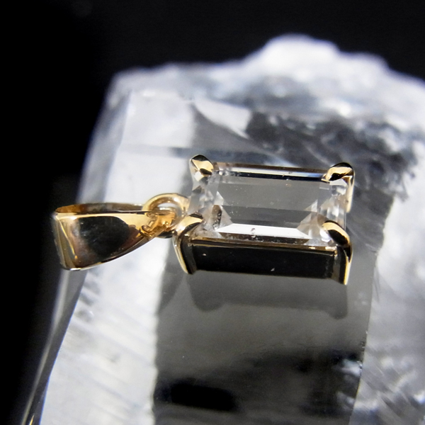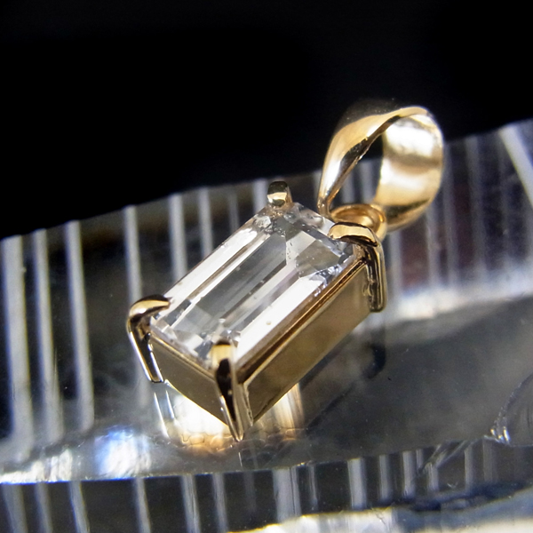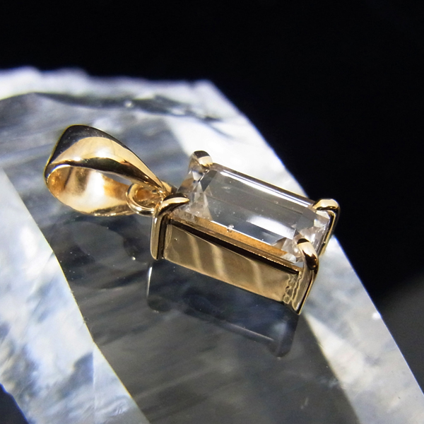 マダガスカル産のフェナカイト、ペンダントトップです。フェナカイトは産出量が少ない鉱物で、その中でも限られた条件下でしか生成されない透明度の高い結晶は非常に貴重とされています。クリアな結晶ですが内包物があります。山梨でスクエアカットを施し、k18を使用した上品なペンダントトップに仕上げました。フェナカイトは最上級の波動を持つ石とされています。