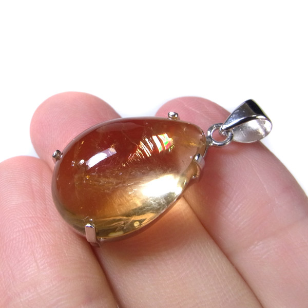 ブラジル産ぷっくりしずく型のナチュラルシトリンペンダントトップです。熱加工なしの天然のシトリンをしずく型に磨いたペンダントトップになります。透明度が高く、発色も素晴らしく、自然な癒されるイエローの良質なシトリンで、表面にレインボーが見られるこだわりのピースを使用しております。ぷっくり感がかわいいシトリンのペンダントトップです。
