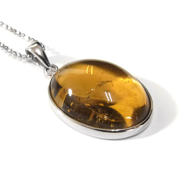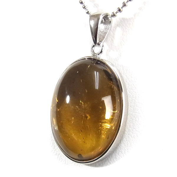 コンゴ産ぷっくりオーバル型のスモーキーシトリンペンダントトップです。熱加工なしの天然のスモーキーシトリンをオーバル型に磨いたペンダントトップになります。透明度が高くクラックが少ないシトリンを使用しております。カラーは落ち着いたシャンパンゴールド、艶と照りが美しいシトリンです。