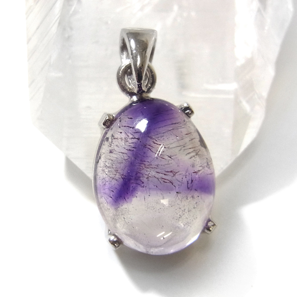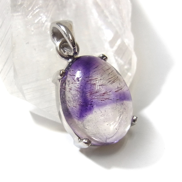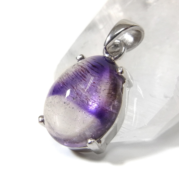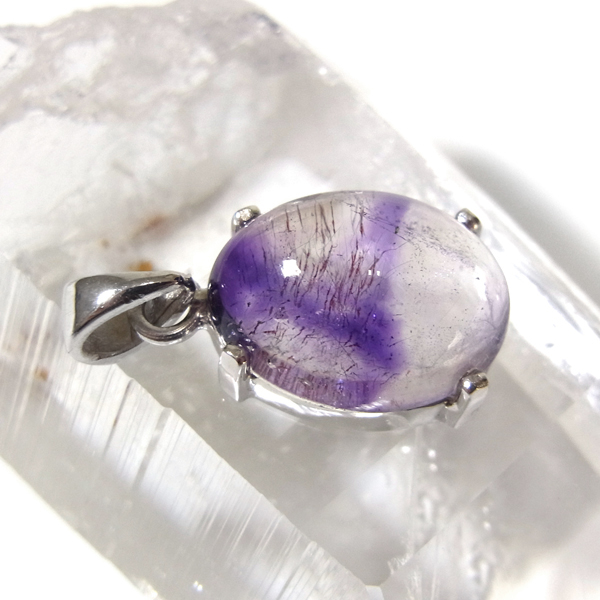 インドのカルール産エレスチャルアメジストを使用したペンダントトップです。透明度、照り、内包物、グラデーションと見どころ満載の非常に魅力的な輝きです。パープルの濃い部分と透明水晶部分が混ざり合いが神秘的で、美しく胸元を彩ってくれると思います。